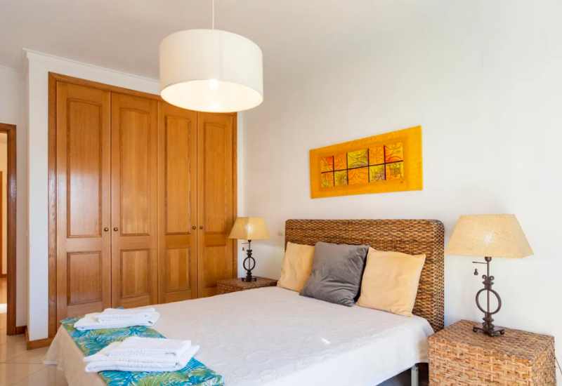 Quartos: Os apartamentos estão bem mobilados e dispõem de um amplo espaço verde com piscina.