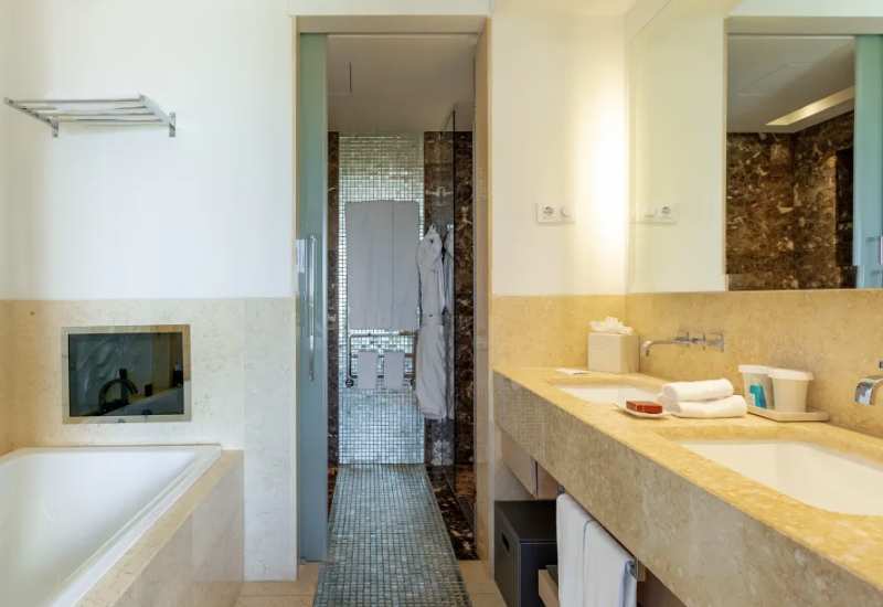 Quartos: Quartos confortavelmente equipados e mobilados com TV HD, ar condicionado, mini bar, telefone, secador de cabelo, wi-fi, máquina de café Nespresso, roupão de banho e chinelos de banho.