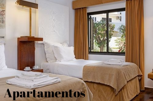 Quartos: Apartamentos T.1 e T.2 com varanda, equipados e decorados para tornar as suas férias inesquecíveis. Dispõem de ar condicionado, acesso internet Wi-Fi e uma televisão ecrã full HD na sala.